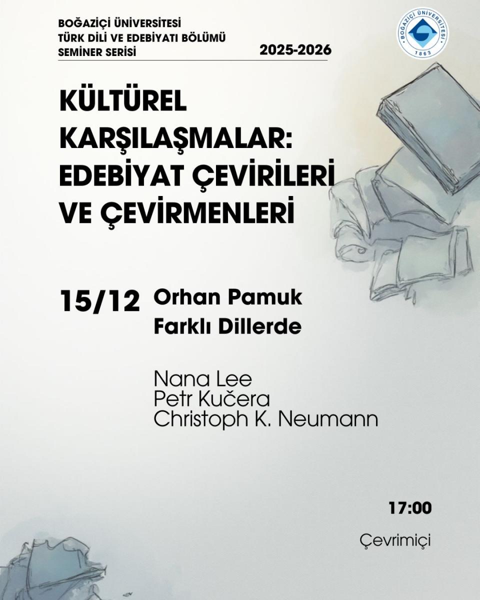 Kültürel Karşılaşmalar: Edebiyat Çevirileri ve Çevirmenleri-Nana Lee, Petr Kučera ve Christoph K. Neumann, "Orhan Pamuk Farklı Dillerde," (15 Aralık Pazartesi, 17.00, Online)