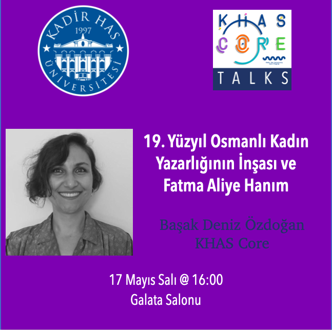Bölümümüzün doktora öğrencilerinden Başak Deniz Özdoğan, 17 Mayıs Salı günü saat 16:00’da Kadir Has Üniversitesi’nde “19. Yüzyıl Osmanlı Kadın Yazarlığının İnşası ve Fatma Aliye Hanım” başlıklı bir konuşma yapacaktır.