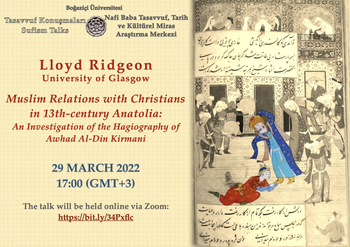 [Talk] Muslim Relations with Christians in 13th-century Anatolia: An Investigation of the Hagiography of Awhad Al-Din Kirmani (Lloyd Ridgeon, 29 March 2022)