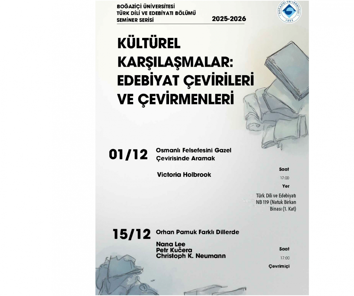 Kültürel Karşılaşmalar: Edebiyat Çevirileri ve Çevirmenleri-Nana Lee, Petr Kučera ve Christoph K. Neumann, "Orhan Pamuk Farklı Dillerde," (15 Aralık Pazartesi, 17.00, Online)