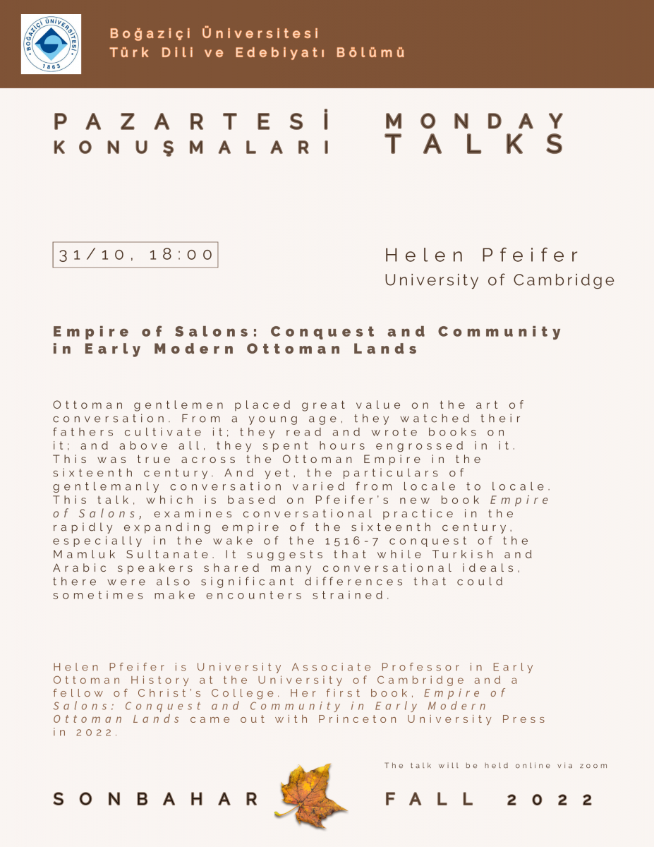 Empire of Salons: Conquest and Community in Early Modern Ottoman Lands (Helen Pfeifer, 31 Ekim 2022)