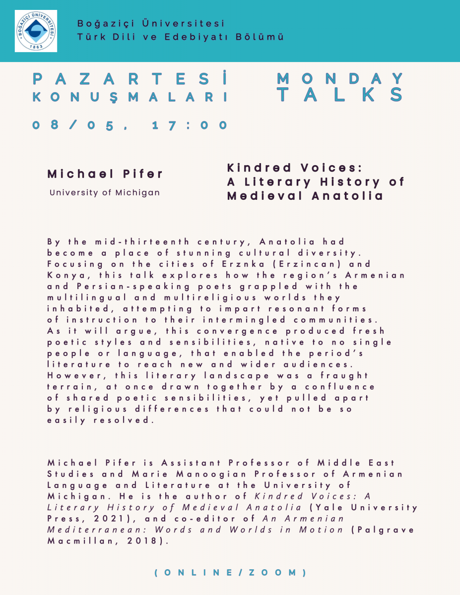 Kindred Voices: A Literary History of Medieval Anatolia (Michael Pifer, 8 Mayıs 2023)