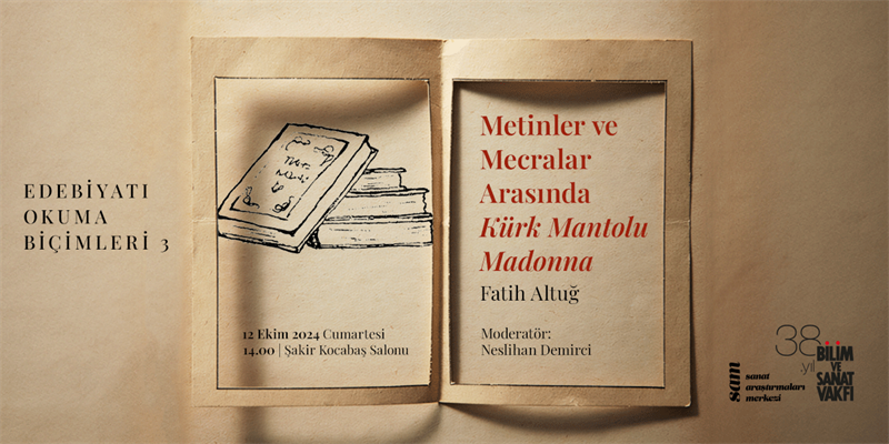 Bölümümüzün hocalarından Fatih Altuğ, 12 Ekim Cumartesi günü saat 14.00’te Bilim ve Sanat Vakfı’nın düzenlediği Edebiyatı Okuma Biçimleri seminerleri kapsamında “Metinler ve Mecralar Arasında Kürk Mantolu Madonna” başlıklı bir konuşma yapacak.