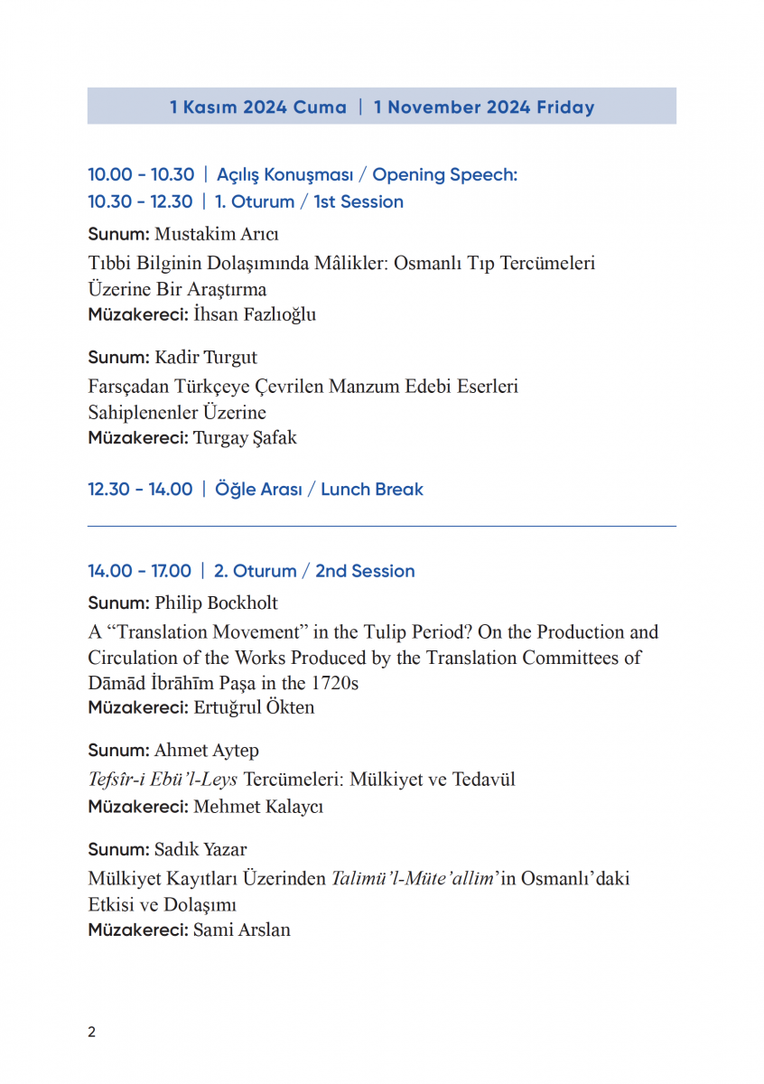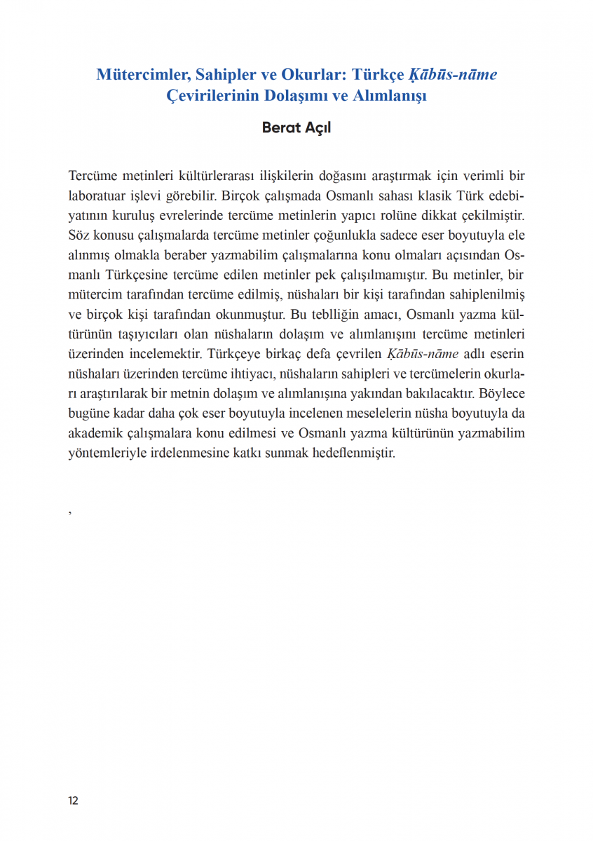 Mütercimler, Sahipler ve Okurlar: Türkçe Ḳābūs-nāme Çevirilerinin Dolaşımı ve Alımlanışı (Berat Açıl, 2 Kasım 2024)