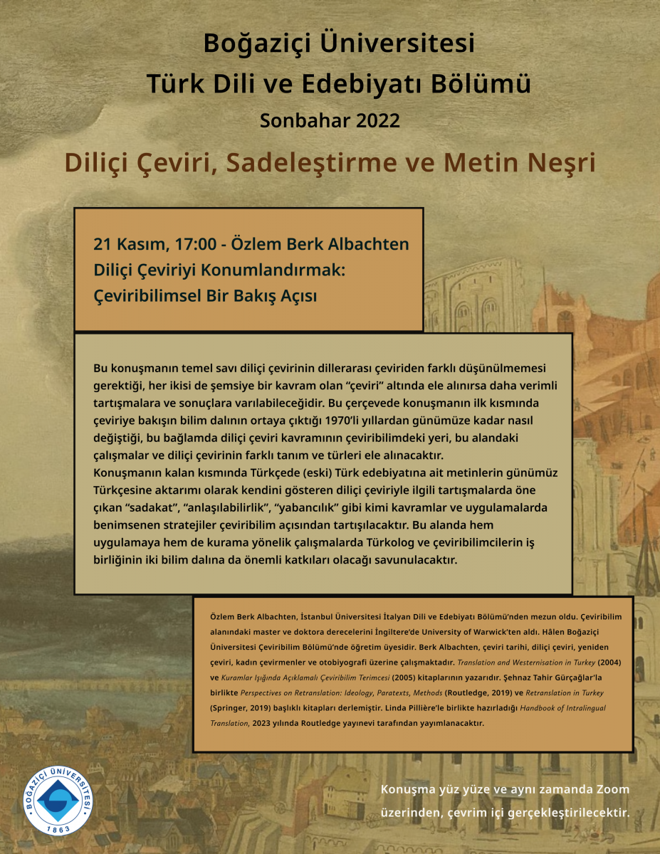 Diliçi Çeviriyi Konumlandırmak: Çeviribilimsel Bir Bakış Açısı (Özlem Berk Albachten, 21 Kasım 2022)