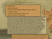 Diliçi Çeviri, Sadeleştirme ve Metin Neşri Seminerleri’nin bu dönemki son konuğu Sadık Yazar. “Tenkitli Neşirde Nüshalar Arası İlişkileri Belirlemenin Önemi” başlıklı konuşma 11 Aralık Pazartesi saat 17:00’de Güney Kampüs, Natuk Birkan Binası, Türk Dili ve Edebiyatı Bölümü seminer odasında gerçekleşecek. Boğaziçi Üniversitesi mensubu olmayanların kampüse girebilmek için tkl@boun.edu.tr adresine e-posta göndermeleri gerekmektedir.