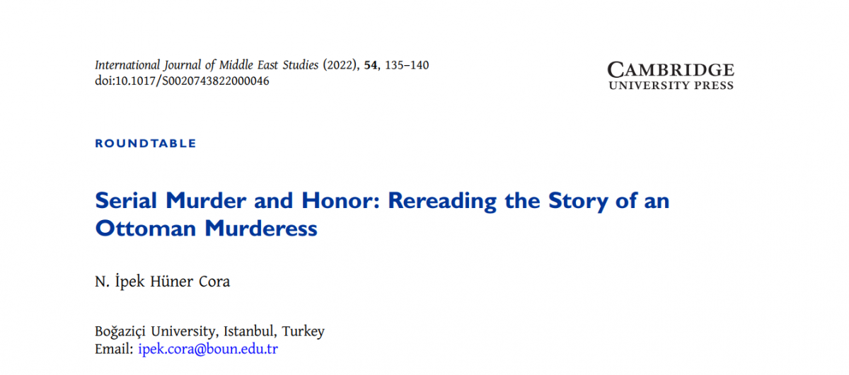 Bölüm hocalarımızdan İpek Hüner Cora'nın "Serial Murder and Honor: Rereading the Story of an Ottoman Murderess" başlıklı yazısı International Journal of Middle East Studies'in Şubat 2022 sayısında yayımlandı. Makaleyi okumak için tıklayınız.