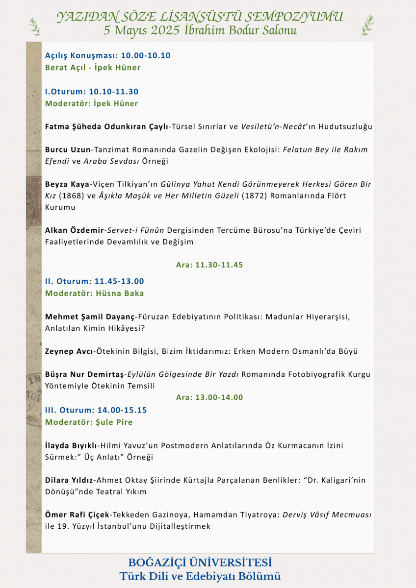Yazıdan Söze Lisansüstü Sempozyumu (5 Mayıs 2025)